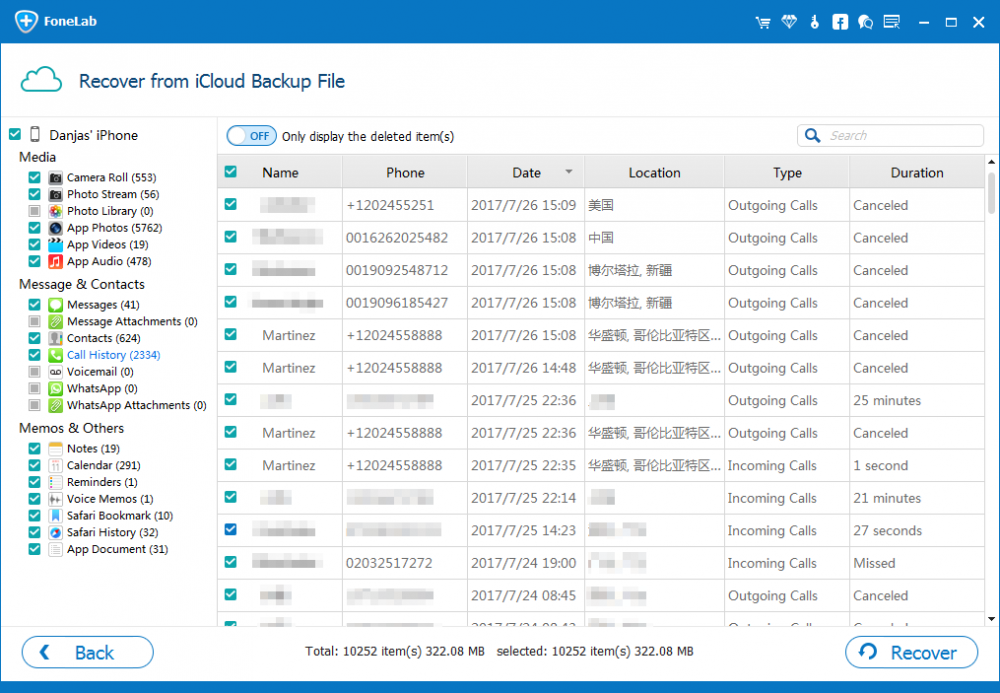Here's how to retrieve deleted call logs on iPhone with previously made backup in iCloud by using the iPhone call history restoring utility mentioned earlier in the article. The process doesn't require connecting your iPhone so it won't result in data loss and keep everything intact on the device.