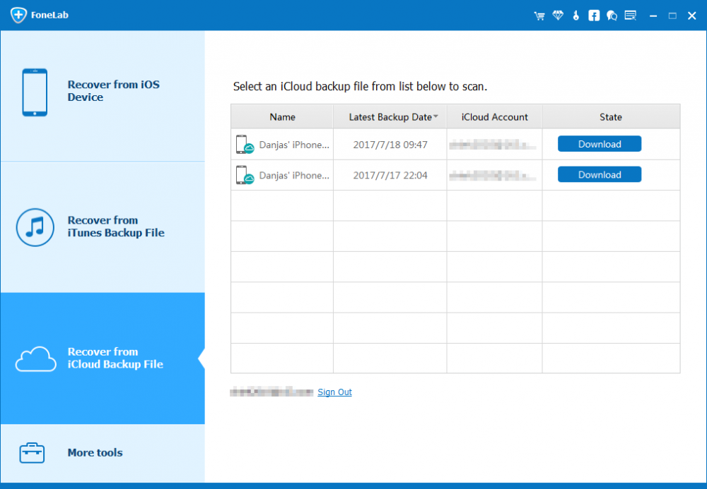 2. Proceed to choose an iCloud backup and click Download button to its right.